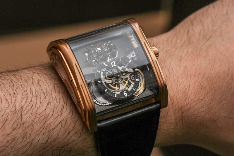 Cabestan 三軸陀飛輪表殼在手腕上并不是我所說的優雅外觀,但這并不意味著是一款優雅的手表。然而,它比其他使用轉動鼓之類的東西指示時間的 Cabestan 手表更容易閱讀。Cabestan Triple Axis Tourbillon 采用當時較為傳統的表盤。表殼本身寬 50.25 毫米,長 45.50 毫米(加上表冠則為 48.30 毫米)。它也是莊嚴的 22.30 毫米厚。這里的表殼采用 18k 玫瑰金,但 Cabestan 將采用鈦、PVD 涂層黑鈦、18k 黃金、18k 白金或鉑金打造。