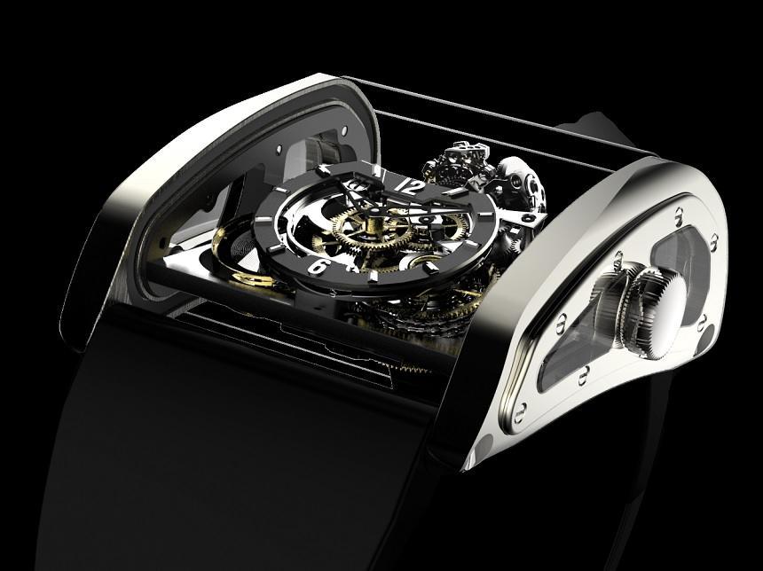 藍寶石水晶實際上是一根管子,顯然是手工加工和完成的。這意味著它用兩個金屬端點環繞整個外殼。它無疑構成了一個有趣且獨特的案例結構。對于手表,您還可以選擇由鱷魚皮、小牛皮、野豬皮或橡膠等材料制成的表帶。當然,您會得到一個與之配套的手工制作的盒子——這在如此依賴手工勞動的限量生產時計上很常見。