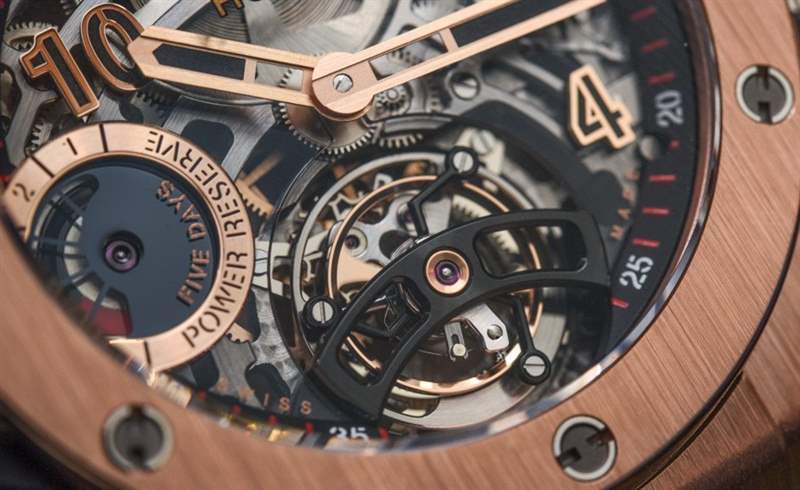 宇舶表更實用的新款超級奢華腕表之一2015 年首次亮相的是 Hublot Big Bang 陀飛輪 5 天動力儲存指示器,采用鈦金屬或 18k 王金制成。為什么功利,你問?好吧,從最嚴格的意義上講,這不是一款工具手表,價格在 100,000 美元左右,我不敢說它實用。但話雖如此,它是直截了當的,對它應該是什么有一個或多或少清晰的定義,并且心中有一個明確的目的。您所擁有的是表盤上的大直徑陀飛輪、有用的動力儲存指示器——以品牌的新方式呈現——這與手動上鏈機芯相得益彰,以及令人印象深刻的鏤空機芯,專為您的觀賞樂趣而設計。您不必愛上這款手表,但您必須承認這是一款宇舶表陀飛輪,佩戴起來非常舒適。