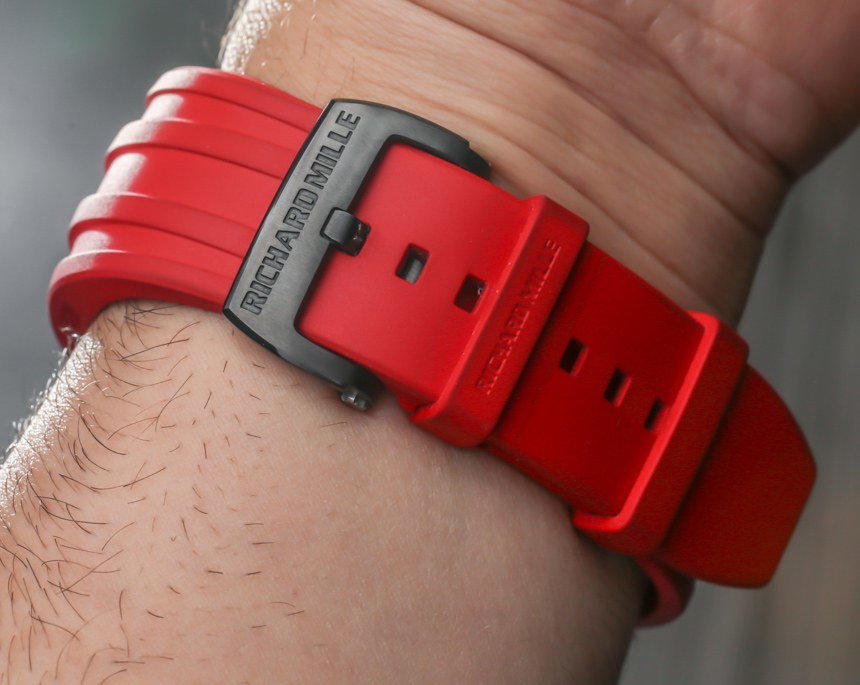 我通常不會花時間談論紅色橡膠表帶,但同樣,理查德米勒 RM 025 陀飛輪計時潛水表的表帶也是獨一無二的。表帶實際上是由一種被稱為 Kalrez 的材料制成的,這只是 Richard Mille 從其他行業(實際上需要它們)借來用于手表的眾多專業工業材料之一。Kalrez 顯然幾乎完全耐化學腐蝕,并在 327 攝氏度的溫度下保持穩定性。多虧了理查德·米勒 (Richard Mille),Kalrez 主要應用于制藥和航空航天行業,您可以在手腕上享受 Kalrez 的理論上的好處,否則會完全摧毀人體。