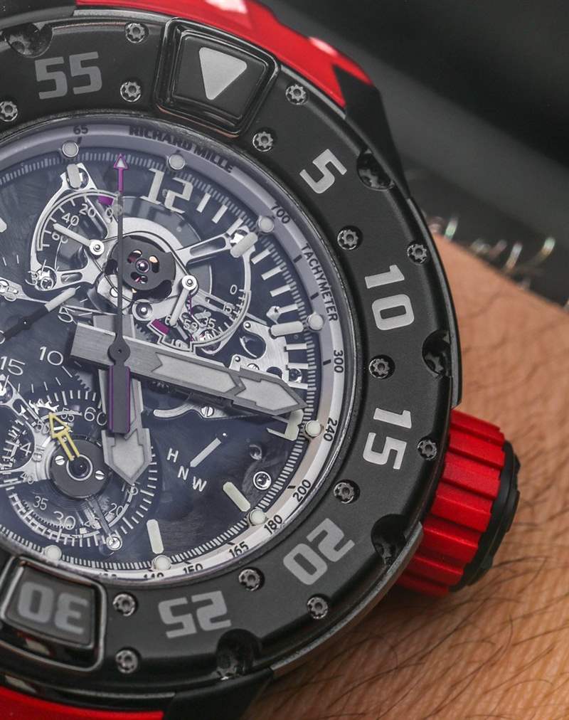 查看 Richard Mille RM 025 陀飛輪計時碼表潛水表的表盤,您會看到一個有質感的機芯板。是的,Richard Milled 決定為機芯使用“碳納米纖維”底板。我確信碳納米纖維比金屬更好有一些有趣的原因。它看起來很酷,讓手表更加獨特——如果你有可支配收入,你真的希望你的潛水表是用它做的,出于某種只有雄性荷爾蒙才能理解的原因。