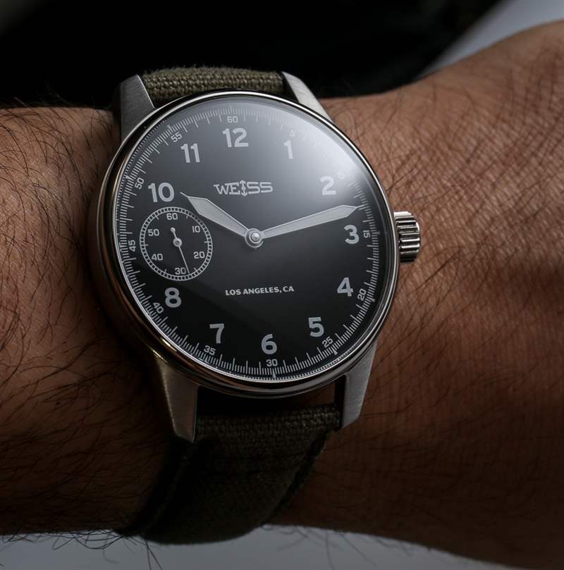 或許我對(duì) Weiss Standard Issue Field 手表(“Field 手表”)也情有獨(dú)鐘,因?yàn)樗厦孢€寫(xiě)著“洛杉磯”——我出生和長(zhǎng)大的城市。諷刺的是,Cameron Weiss 先生,該品牌并非來(lái)自洛杉磯,但他是一位地道的美國(guó)制表師,以在美國(guó)制造手表為榮。當(dāng)問(wèn)他成為美國(guó)制造手表“新”趨勢(shì)的一部分感覺(jué)如何時(shí),他并不完全覺(jué)得自己像個(gè)革命者,但似乎更喜歡在市場(chǎng)上生產(chǎn)手表的想法意味著被購(gòu)買。