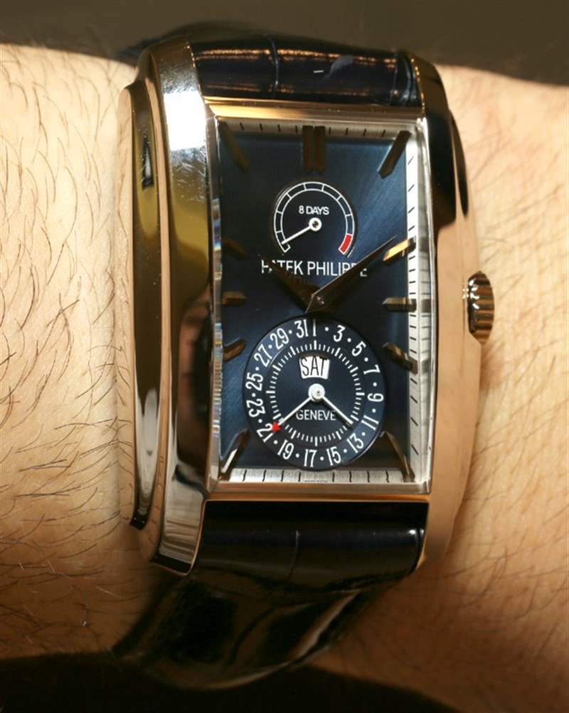 百達翡麗 5200 Gondolo 8-Day 配有藍色或黑色鱷魚皮表帶。這是一款精美優雅的手表,具有現代氣息,毫無疑問是為了引起百達翡麗更時尚或更技術的粉絲的共鳴。憑借長動力儲存和簡單的星期/日期機制,這也是百達翡麗系列中一款不錯的(盡管價格昂貴)日常佩戴。它暗示了該品牌超卓復雜功能腕表的風格,當然比他們的三針表款更獨特。