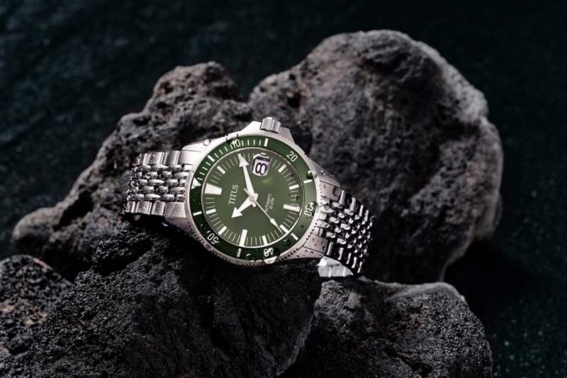 擁有潛水表風(fēng)格的Valor,當(dāng)然有單向旋轉(zhuǎn)表圈、表冠護(hù)肩、旋入式表冠這些潛水表的必備配置。這枚Valor便以綠圈綠面的組合亮相,捉緊近年的綠表潮流。腕表配精鋼鏈帶,左右兩邊是經(jīng)拉絲打磨的大鏈節(jié),中央的四珠鏈節(jié)則經(jīng)拋光打磨,光影效果處理得宜,上手亦貼服舒適。而在黑暗中,更可見圓點(diǎn)時標(biāo)及指針散發(fā)明亮的超級夜光效果,看上去相當(dāng)搶鏡。Valor系列腕表更擁有出色的200米防水性能,證明腕表堅固可靠。