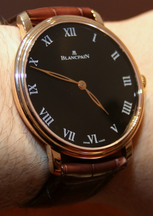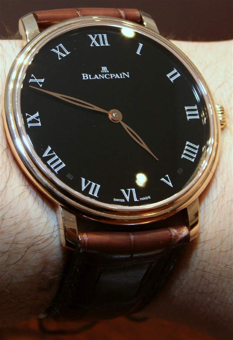 只是一塊漂亮的寶珀大尺寸薄表?不完全是。從表面上看,這款 Villeret 系列中的帥氣時計采用相當薄的手動上鏈機芯和極簡主義外觀的黑色或白色琺瑯雙手表盤。表盤上只有那些標志性的寶珀 18k 金葉形指針和琺瑯羅馬數字時標。最有趣的是手表背面的內容。