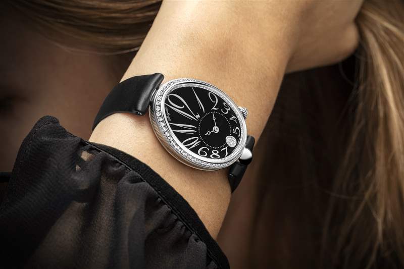 為紀念那不勒斯王后系列誕生20周年,Breguet 剛剛推出一枚 Reine De Naples 8918 女士腕表新作,特別之處是首次采用黑色大明火琺瑯表盤搭配銀色指針和時標,極簡約的黑白對比更強調獨立而優雅的強大氣質。