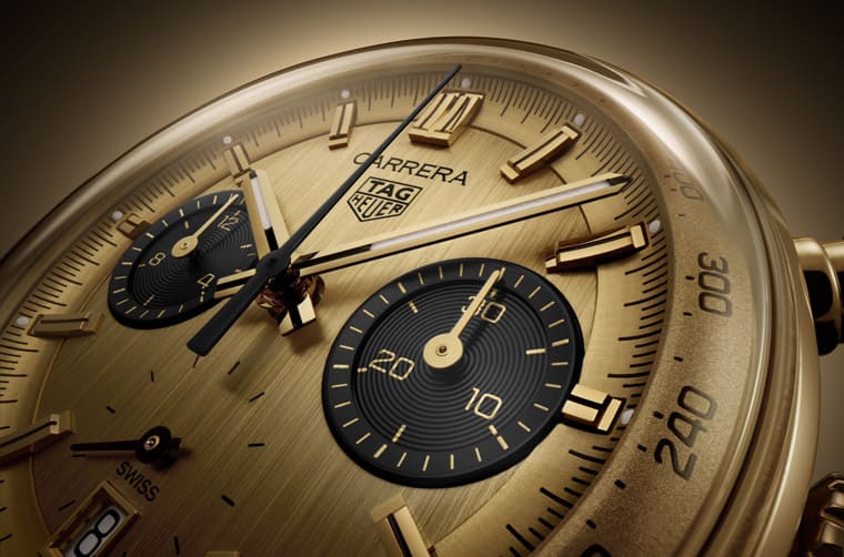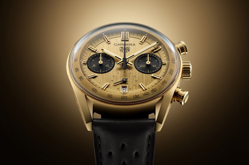 ▲泰格豪雅以1960年代送給冠軍車手的黃金特別版Carrera計(jì)時(shí)碼表為靈感,創(chuàng)作出全新Carrera Chronograph黃金計(jì)時(shí)碼表。