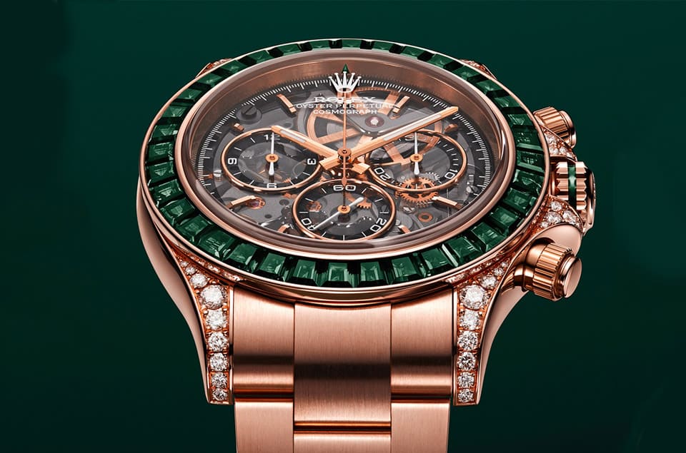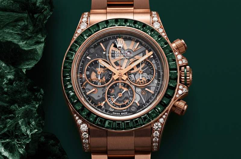 光之詩這款改表把客戶的愿望具體實現了,手表的確不僅是鑲上寶石和鉆石如此簡單,Artisans de Genève也用本身精湛的工藝水準重新改造了4130機芯,并在手表正反面大方秀出這些展現進階制表技術的成果,過程中反而最花時間的是搜集寶石的階段,為了讓手表看起來和諧且賞心悅目,每顆寶石的色澤都已經做到力求接近一致的地步,改裝完成后的116505有一種脫胎換骨的感覺,既有珠寶點綴,又展現出高級表的風范,佩戴在手上的滿足感想必很巨大。