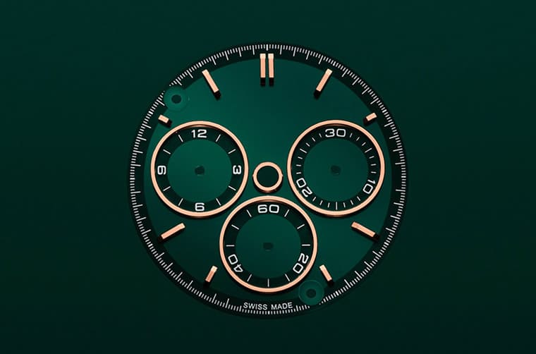 結果Artisans de Genève為了讓表圈上的36顆綠色藍寶石能夠展現出近乎一致的色澤與品質,他們前后花了兩年時間搜集寶石,等找到寶石后又還要切割、鑲嵌等,改裝表品牌選擇用隱形鑲嵌工藝來固定表圈上的寶石,所以一眼看到手表不會看到表圈上有任何的鑲爪,可以更盡情地釋放寶石本身的光芒。除了表圈之外,Artisans de Genève也在Daytona 116505的表殼和表耳等處手工鑲上52鉆石,如同表圈上的綠色藍寶石,這鉆石的凈度和光澤也都是經過篩選后的結果,致力讓手表能夠展現出高度和諧感。