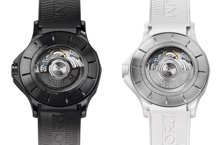 ▲四款Admiral海軍上將42自動表隨著配置的白色或黑色表殼,表背設計也會有所差異。