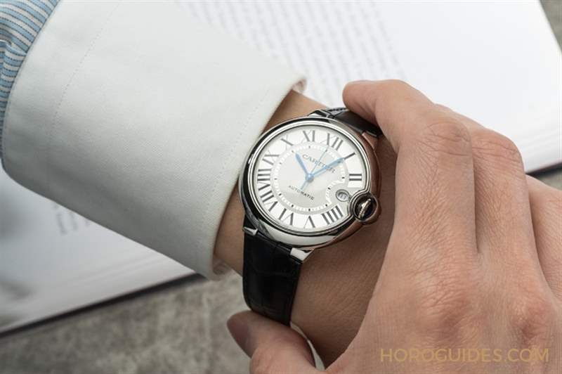 Peter:像卡地亞它傳統的Tank、SANTOS,它的角度是比較方形表,角度比較犀利一點點,藍氣球完全不一樣,它外面亮面非常柔和,非常圓弧的設計,再加上它的鏡面有點弧度的,有點拱起來的弧度,讓時間上的流動非常優雅。