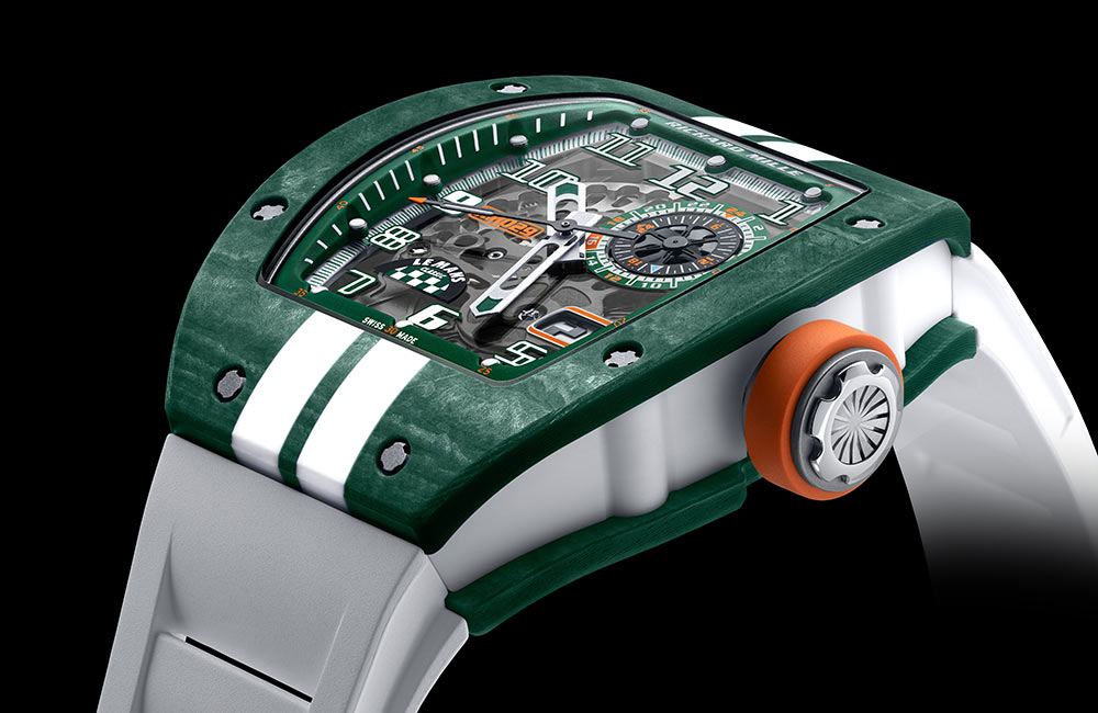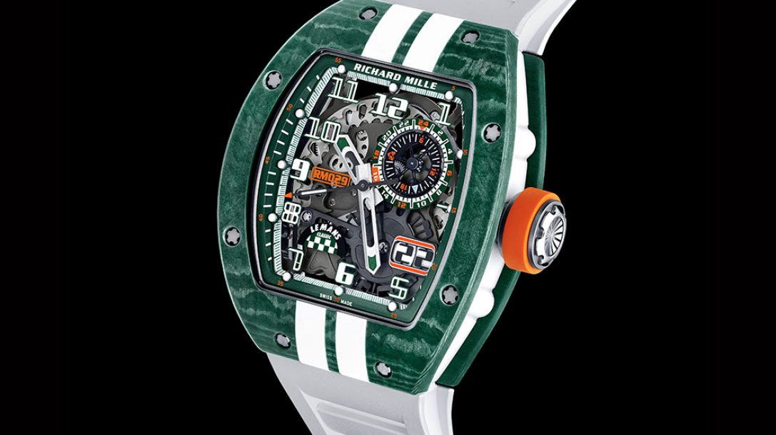 最初定于2020年,然后是2021年,即將到來的勒芒經典賽現在將于2022年推出,并于2023年推出,以向100致敬。千在傳奇賽道上組織的首次比賽的周年紀念日。為了慶祝這一賽事,理查德·米勒(Richard Mille)自2002年創建這場比賽以來的合作伙伴,被譽為經典賽車愛好者不容錯過的,他推出了一個限量系列,只有150件,擁有該賽事的顏色。RM 029勒芒經典自動上鏈表殼(40.10 x 48.15 x 13.10毫米)頂部飾有大理石綠色石英TPT?表圈,飾有雙白色表帶,采用相同的高科技材料制成。這種材料也被用來制作表帶。表盤與2014年推出的原始表款截然不同,其24小時顯示偏離中心位于2點鐘位置。一只藍色的三角形指針懸停在精確的小時刻度上,16:00穿著橙色,這是比賽開始時間的帽子尖。